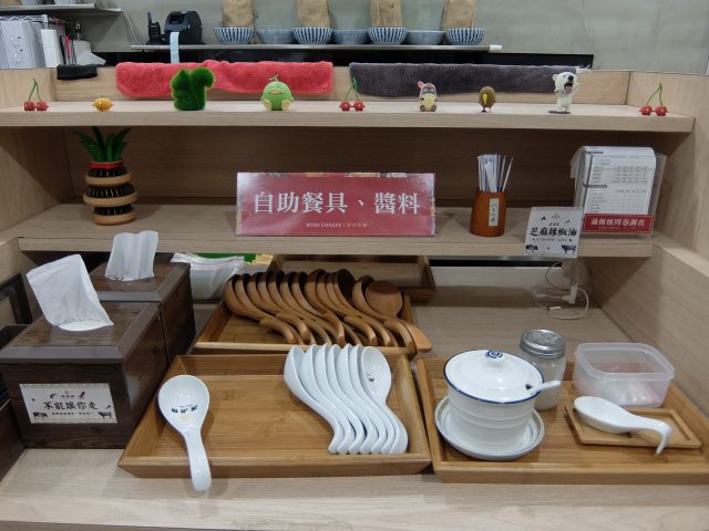 注文を待つ間、レンゲなどを用意しましょう。台湾のお店は多くがこんな感じでセルフサービスです。