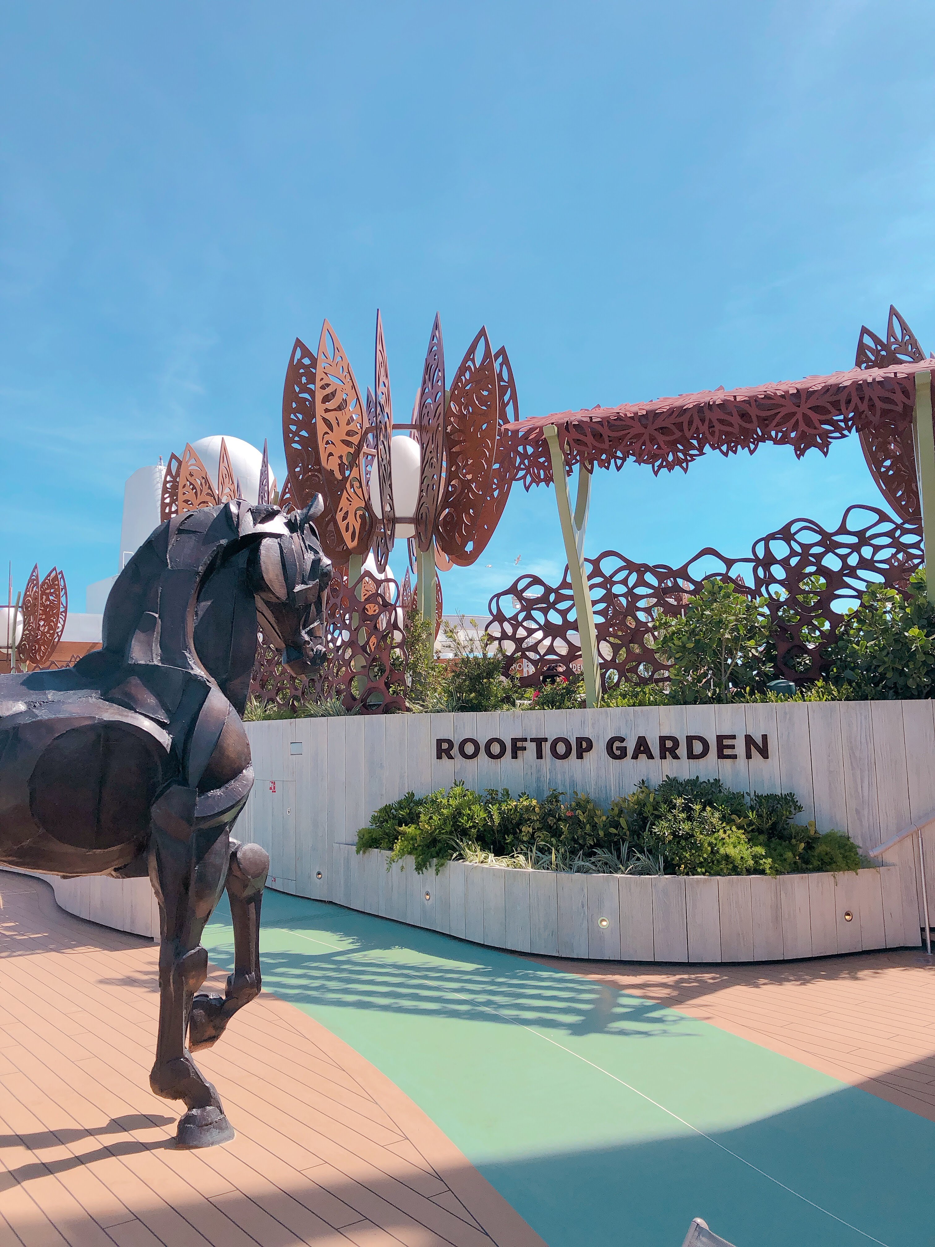 その他、クルーズの概念を覆すポイントは屋上にも。通常は塩害を受けるため、クルーズ船内に生きている植物は置きません。ですがエッジには広大で素敵なルーフトップガーデンがあるんです♡