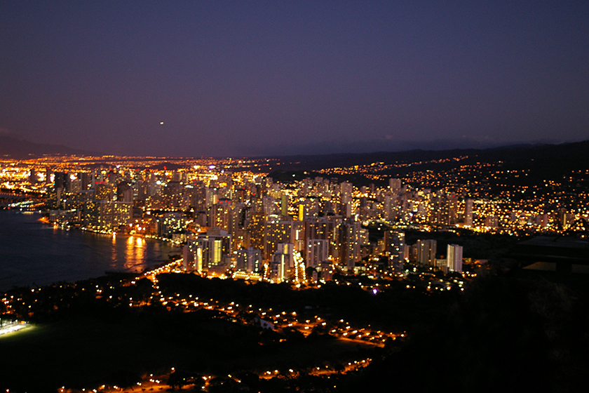 夜景もきれいな絶景スポットとして人気のタンタラスの丘。ホノルルの北に位置するコオラウ山脈にある小高い丘のことで、火山噴火によって形成された「天然のテラス」と呼ばれています。ここから見えるのはダイヤモンドヘッドやワイキキの高層ビル。市街地だけではなく、その先の海までを一望できます。日没後には街の明かりが眼下に広がるだけでなく、美しい夜景と星空も見ごたえたっぷりで特におすすめの時間帯です。ただし、日没後はかなり暗くなるため現地のオプショナルツアーを利用するといいでしょう。
