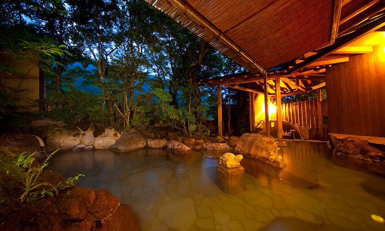 名物のジャングル風呂、かっぱの湯、滝見の湯など、個性あふれる温泉を味わえる宿。