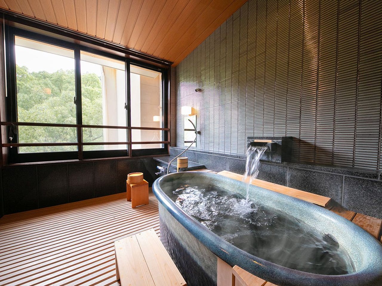 2,400坪もの敷地に広がる日本庭園を眺めながら過ごせる「清流庵」は、1日わずか6組限定という、プライベート色の強い料亭旅館です。四季折々の表情豊かな日本庭園を眺めながらいただくお食事は、海外から凱旋帰国したシェフが地元の食材を活かし、和食の旨味・だしをベ-スに作り出すお料理にリピ-ターも多くいます。コロナ禍の影響により大浴場の使用は中止されていますが、専用風呂が備え付けられている異なるタイプの客室で、敷地内に沸く「秋月温泉」を堪能できます。贅沢な全室かけ流しで、中には岩盤浴や露天風呂付きの客室もあります。アルカリ性単純温泉の泉質は、神経痛や筋肉痛への効果が期待できます。
