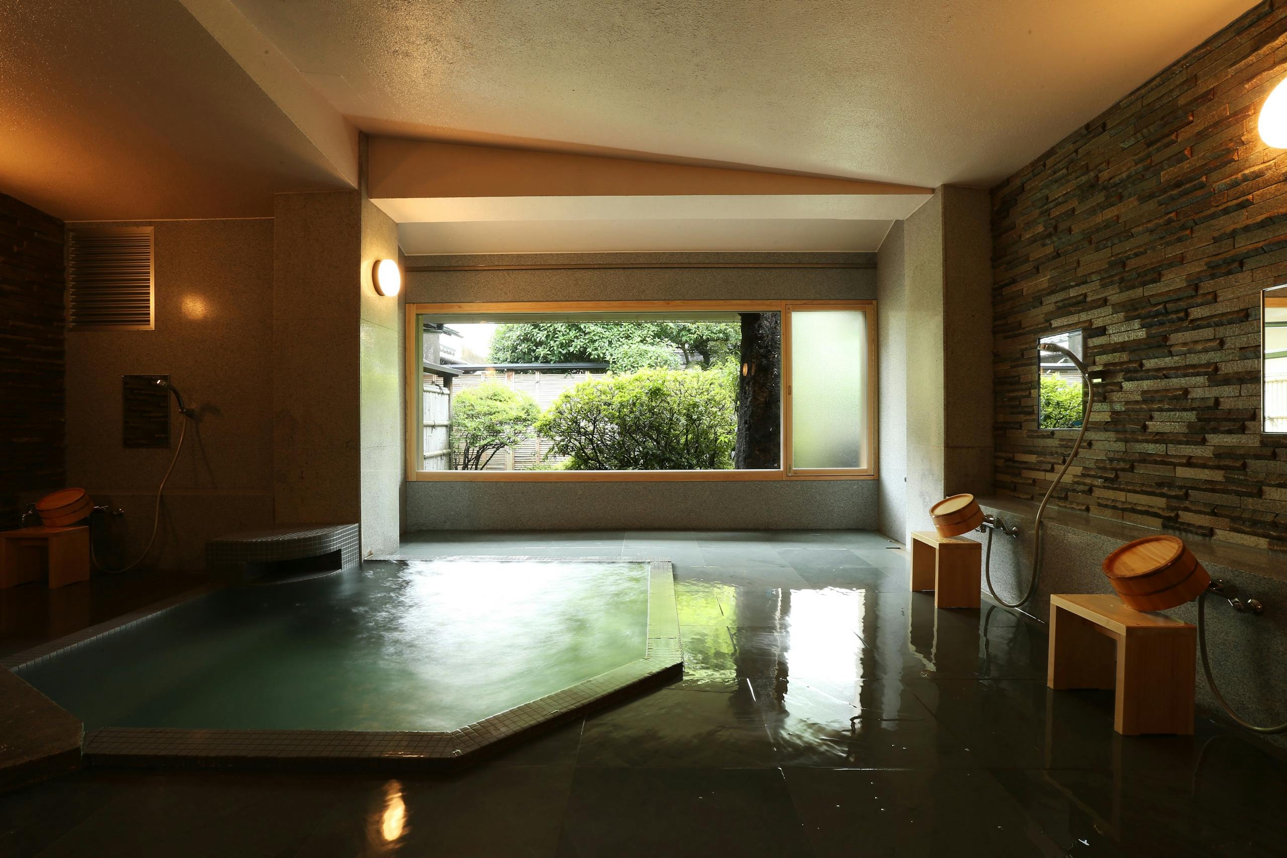 数寄屋造りで全館畳敷の、和のしつらえが心休まる温泉旅館「大西屋水翔苑」。い草の香りにリラックスできるこの空間では、ぜひ素足で畳の温もりを感じましょう。美しい坪庭を眺めながら入れる大浴場も人気ですよ。季節ごとに異なる表情を見せてくれる露天風呂でのんびりと日常の疲れを癒せます。