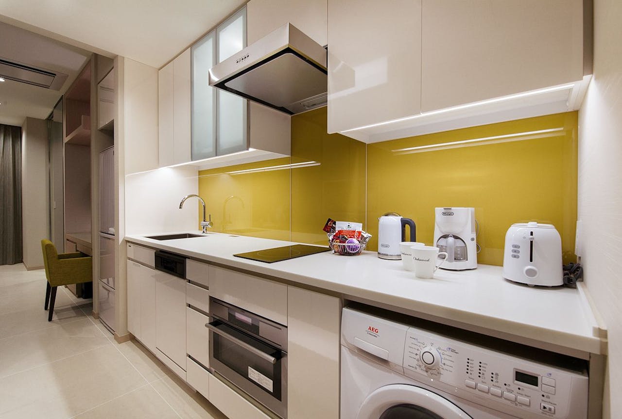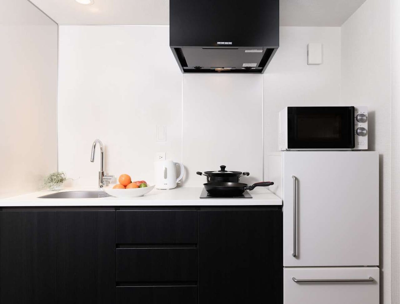「オークウッドプレミア東京」は、全室にキッチンと家具家電、調理器具が付いているサービスアパートメントです。丸の内の高層ビル内というロケーションながら、自宅にいるかのようにくつろげるのが魅力。家電はオーブンレンジや電気ケトル、コーヒーメーカーなどあるとうれしいものが勢揃いで、長期滞在にも適しています。