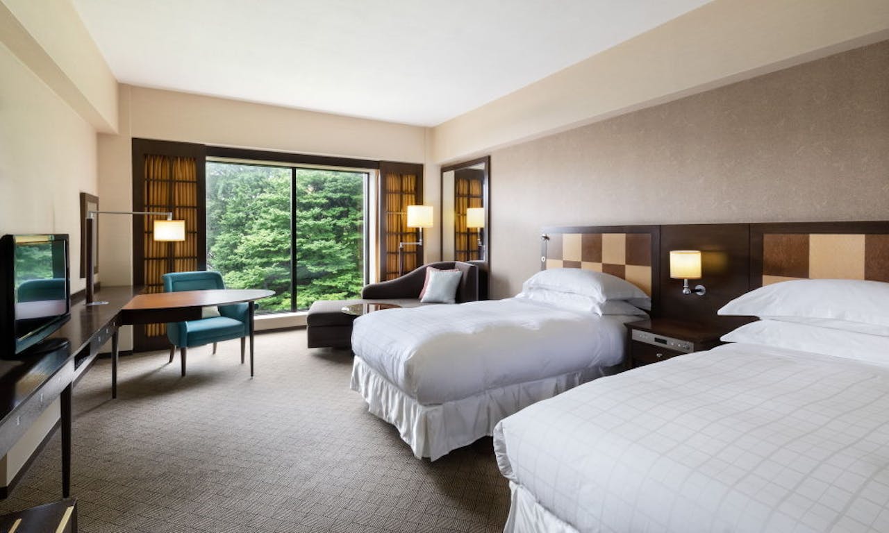 「シェラトン都ホテル東京」はクラシックな雰囲気に包まれながら、最先端のサービスを受けられるのが魅力。窓の外には約1,800坪もの美しい庭園が広がり、四季折々の姿を見せてくれます。