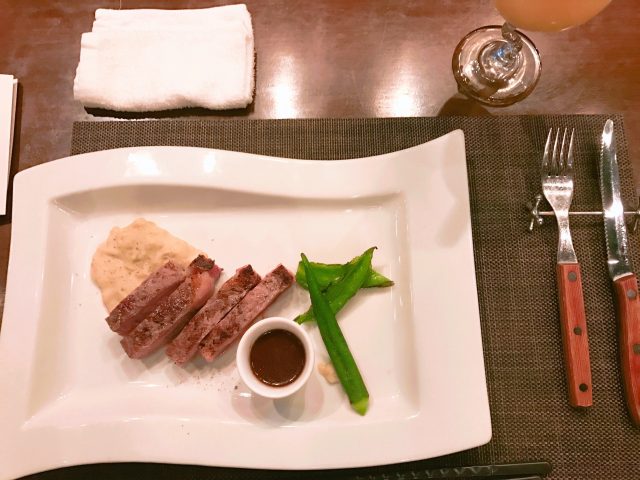また地元の新鮮なお魚と食材をつかったメニューも。メインはアンガスビーフをつかったステーキです。ボリューム満点で最終日の夜にはもってこいですね♪