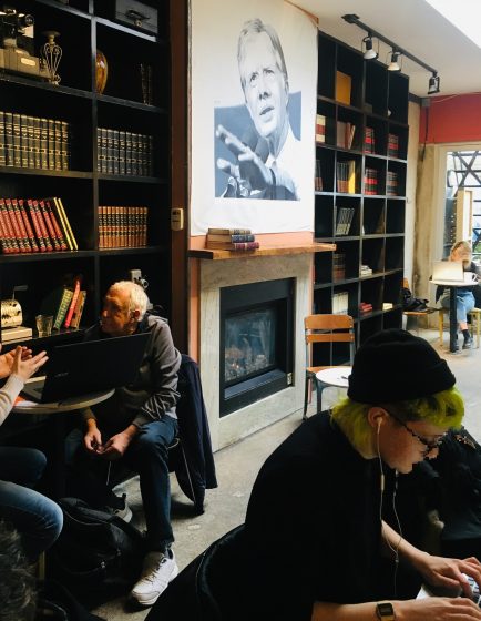 自由なスタイルで仕事をするカナダ人は、よくカフェにパソコンを持ち込みます。ジミーズコーヒーは、その落ち着いた雰囲気とカッコイイ内装が仕事を捗らせるのか、いつも多くのビジネスマンや学生で賑わっています。