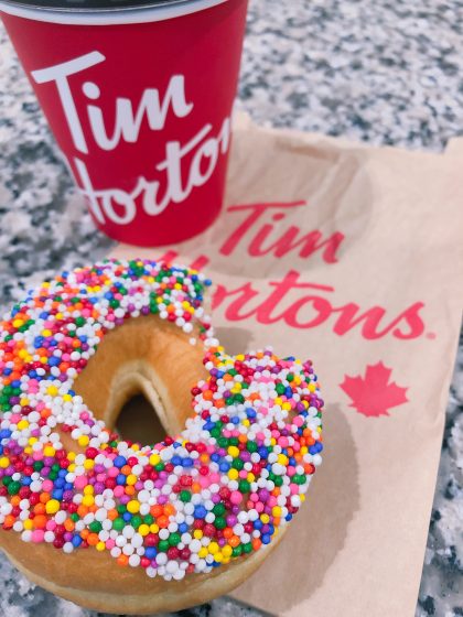 トロントの街を歩くと、至る所で見かける真っ赤な看板と赤いカップを片手に歩く人々。カナダ人にとって欠かせないコーヒー&ドーナツチェーンです。カナダ全土どこに行っても見つけられます。