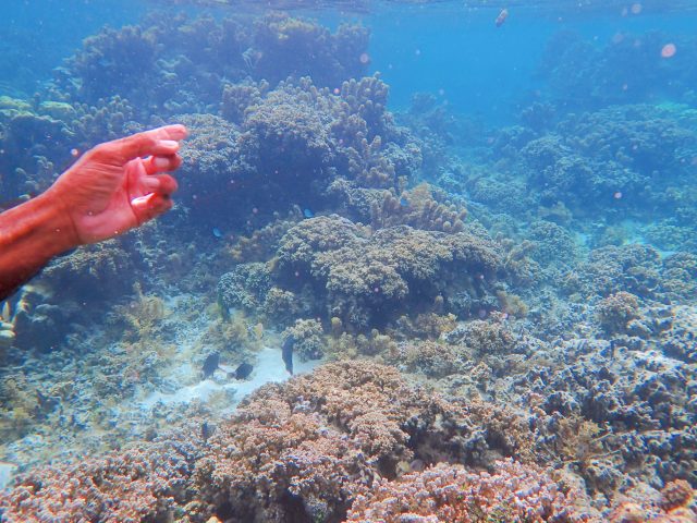 インストラクターの方が、船の上で丁寧に見られる魚や絶対に触ってはいけない貝などを教えてくれます。絶対に触ってはいけない貝はものすごい毒で、触ったら死ぬらしいです。